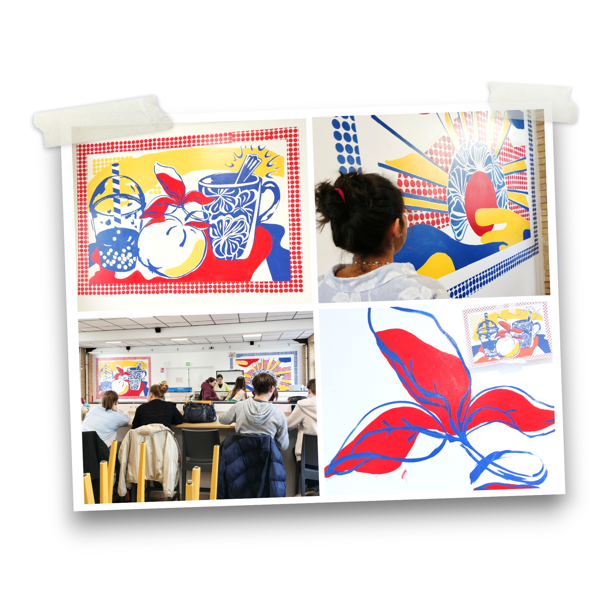 Fresque participative à Montreuil sur mer d'inspiration Roy Lichtenstein / Cafétaria du lycée Saint-Austreberthe / Janvier 20